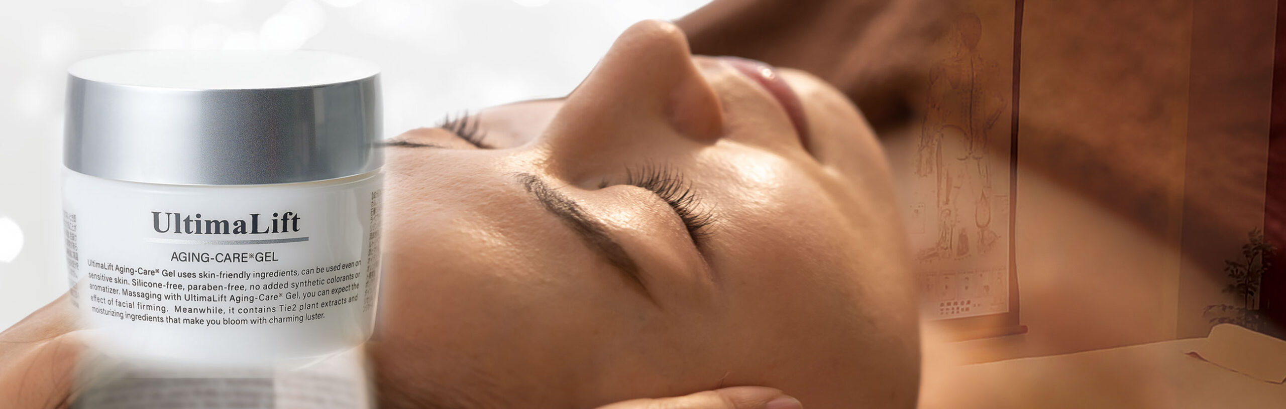 林氏: はい、大きく分けると施術と物販の二つです。施術は、鍼灸治療、美容鍼、筋膜矯正など、実際に触れて体を整えてゆくもの。そして、物販としては、施術にも取り入れている「ヒト幹細胞シートマスク」「プラチナ量子矯正ジェル Ultima Lift(以下、ジェル) 」を扱っています。プラチナや鉱石、引き締め成分、血行促進成分、活性酸素を減らす成分などが入っていて、非常に細かい振動を体に与えます。その振動が生体電流という微弱な電気を整えます。直接お顔に塗らなくても、手足に塗るだけで効果が現れます。