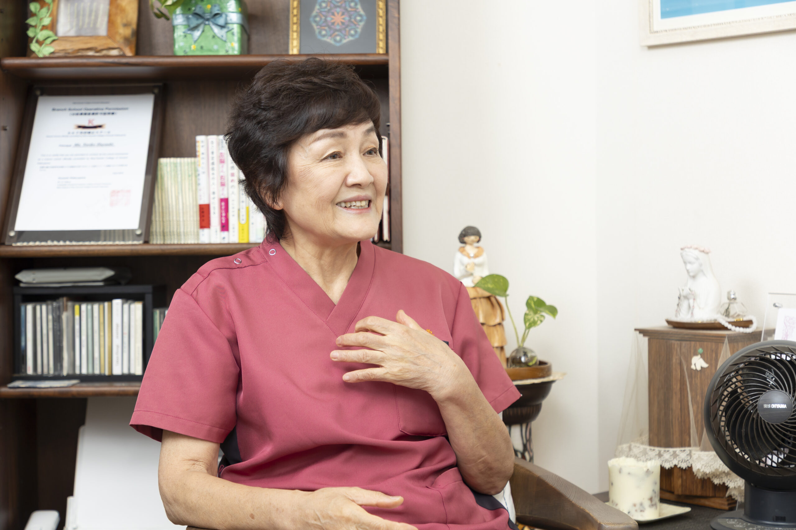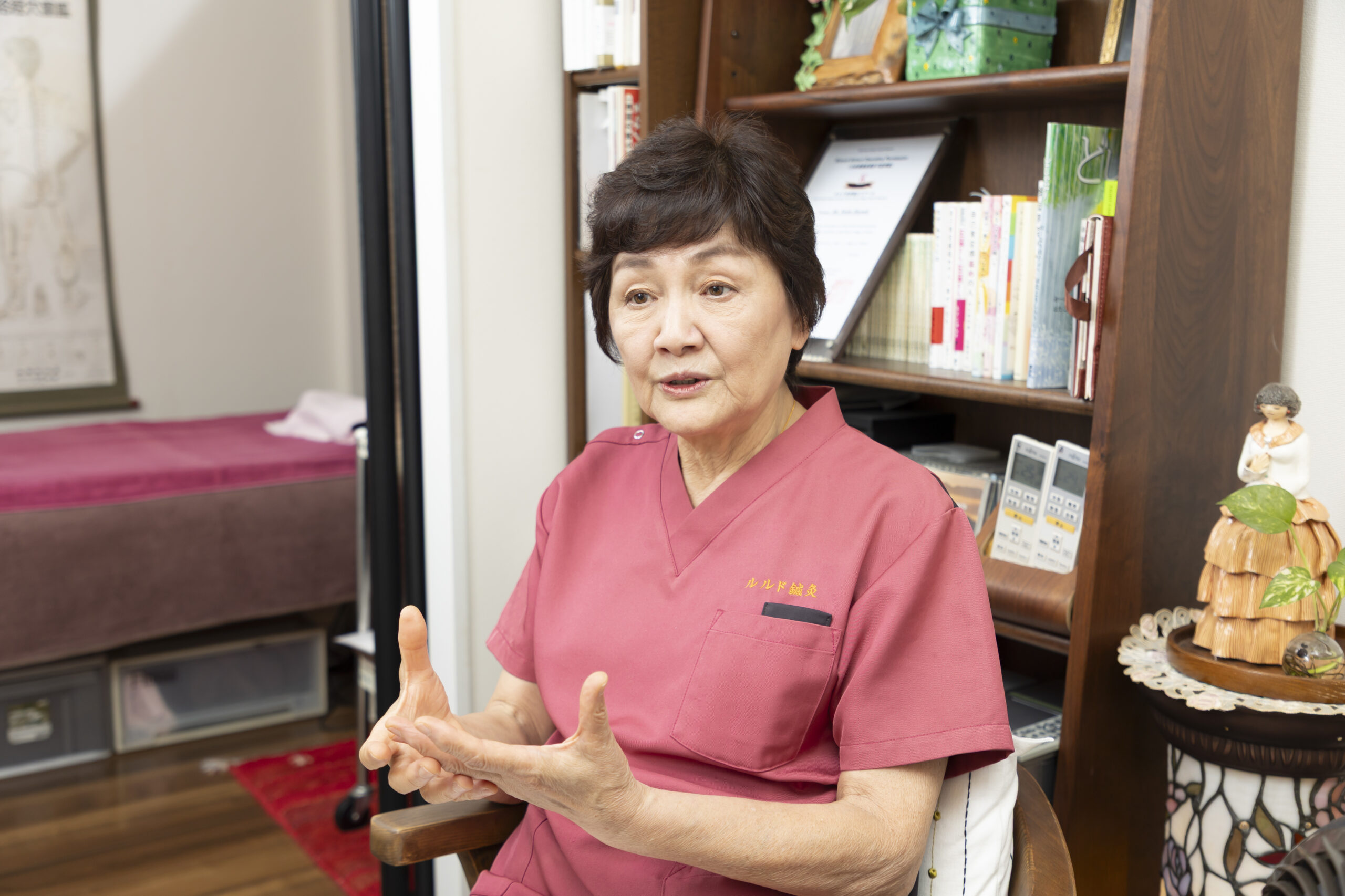 林氏: 私は看護師として働きながら、50歳で鍼灸の資格を取りました。ちょうど開業を考えていた時、このマンションのモデルルームを見てここで治療がしたい!と直感し、16年前に『ルルド鍼灸治療院』を開業しました。名前は、私のカトリックの霊名「ベルナデッタ」に因んだフランスの聖地名に決めました。