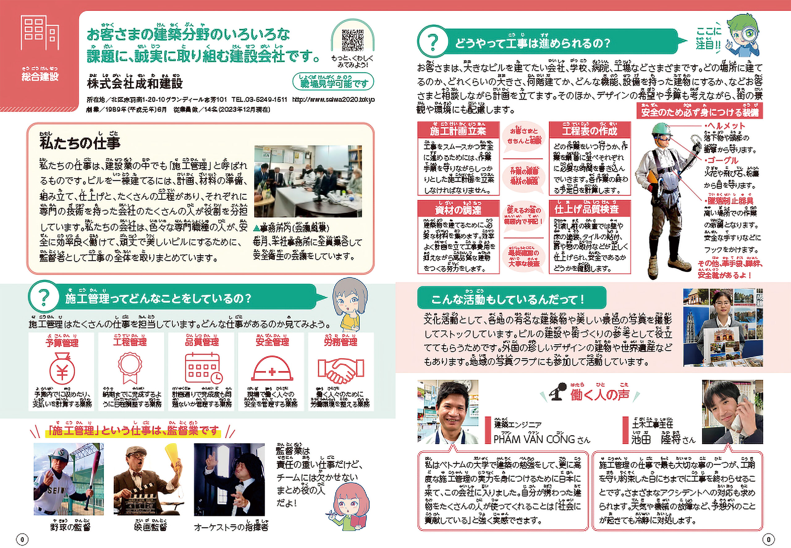 株式会社成和建設は、「施工管理」を専門に総合建設業を営んでいます。成和建設の社風は「地味に、愚直に、同じことを積み上げる」ことにあります。派手さはなくとも、毎日の小さな積み重ねが大きな信頼を生みます。安全は最優先です。建設業においては全てに優先するのが、安全を守ることにあります。それは、義務だから…ではなく、私たちの文化です。仲間を守る誇りそのものです。社員同士が自然に声を掛け合い、確認し合う風土が根付いていることが、私たちの強みです。安全を守ることは、夢を支える土台であり、未来を築くための基盤なのです。